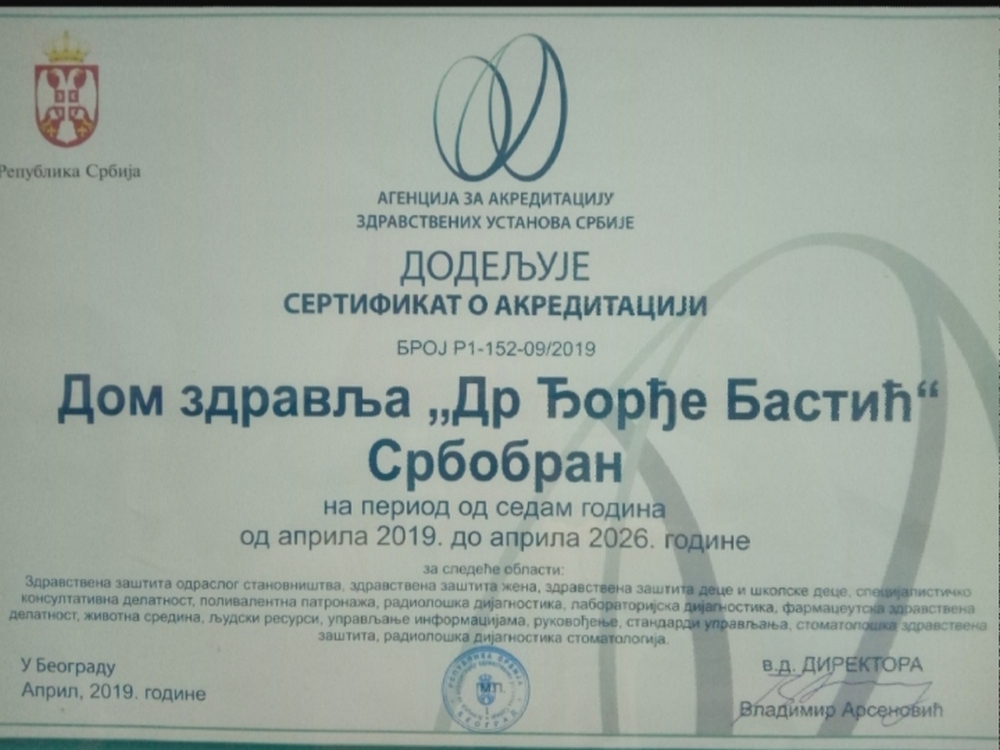 Ovaj sertifikat bi trebalo da znači, u narodu rečeno "korak više", a za pacijenta "usluga više" što se tiče preventive i zdravstvene zaštite naših sugrađana. A KAKO ? Da li je to sve moguće bez funkcionisanja platnog računa ovog Doma zdravlja koji je zapao u tešku finansijsku krizu što ukazuje i sama blokada računa. Da li je moguće ispoštovati sve navedene usluge iz oblasti zaštite i lečenja građana, a koje u svom tekstu sadrži ovaj sertifikat, ako se nema novca !? Račun ove ustanove je blokiran od 18.08.2020 godine za iznos od 1.015.761,77 dinara...