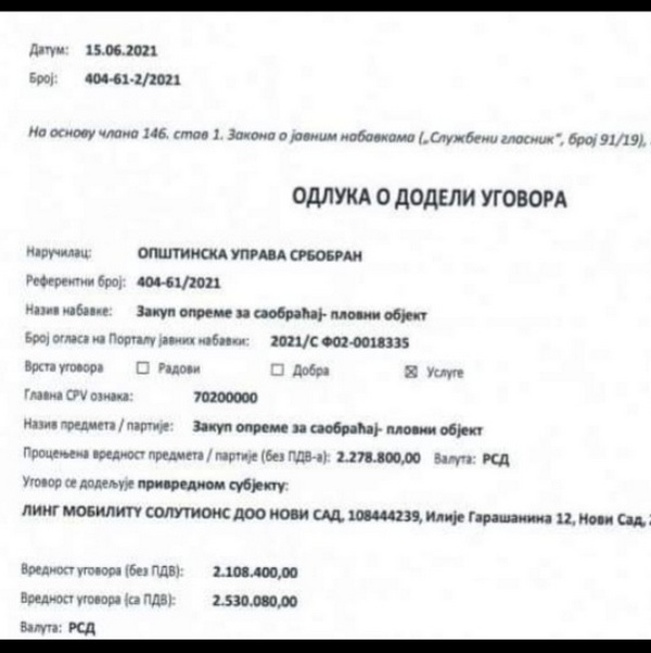 Na opštinskom sajtu iako postoji obaveza objavljivanja javnih nabavki ovih stavki nema. Zanimljivo je i to da su tri vozila i čamac nabavljeni od istog ponuđača koji je bio i jedini koji se javio na oglas. Na direktno upućeno pitanje jednoj drugoj kompaniji iste delatnosti da li su znali za ponudu i zašto se nisu javili na oglas odgovoreno nam je da su bili upoznati i da se nisu javili jer bi to bilo "čisto gubljenje vremena, a vi to tumačite kako hoćete". Dakle, ako su vozila nekom uručena, to je plemenit gest koji bi svi pozdravili, ako mi grešimo ukažite nam na grešku u tumačenju da vam ne kaljamo čist obraz. Ako ste se ponovili za tri vozila, dajte da proslavimo i u zdravlju ih vozili. Samo je red da znamo, ipak smo vam mi dali taj novac. Baš kao i onaj za vaše plate.