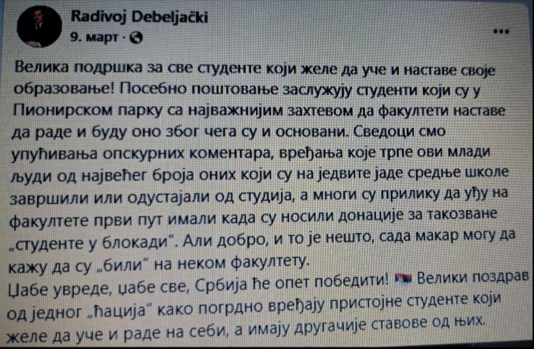 Na skupu je bilo i onih promućurnijih, visprenijih i školovanih, koji su se nedavno na fejsbuku čak javno hvalili svojim diplomama, (toliko da su izazvali polemiku ispod objave) tvrdeći da nisu ćaciji.foto:Facebook Radivoj Debeljačkifoto:Facebook Radivoj Debeljačkifoto:screenshot facebookfoto:screenshot facebookfoto:screenshot facebook