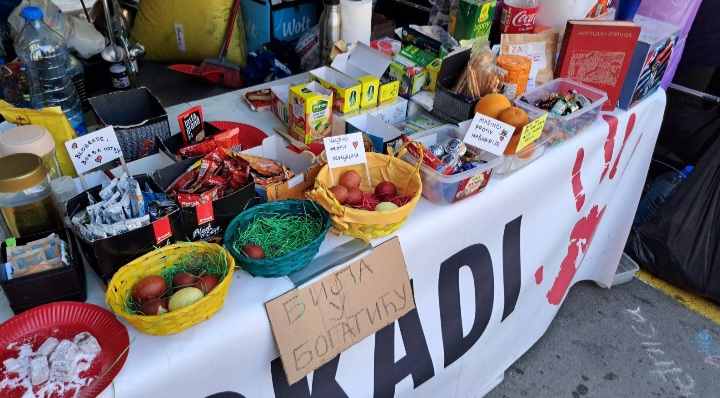 “Mi smo ovde prvenstveno da pomognemo studentima – skuvamo kafu, čaj, ili spremimo hranu. Tri dana zaredom smo i kuvali, mrsno i posno, za one koji drže Vaskršnji post. Studenti su predivni, atmosfera je odlična, a ljudi svakodnevno donose donacije. Mi ćemo biti uz studente do kraja. Dakle, ili dok RTS ne bude ugašen ili dok se ne raspišu izbori za novi REM. Da li pumpamo do kraja? Apsolutno, nema odustajanja”! Uz studente je i zbor građana sa Bežanijske kose, a kako Nenad sa kojim smo razgovarali kaže, studenti rade odličnu stvar jer rade na promeni svesti: