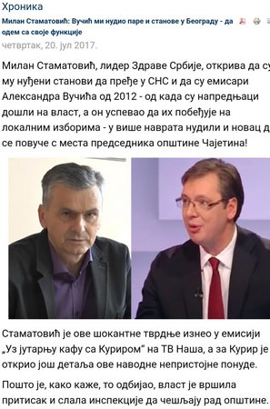 Budući da smo u Zdravu Srbiju Milana Stamatovića ušli iz najčistijih pobuda, smatrajući da je domaćinsko vođenje opštine jedini način opstanka, ne želimo da budemo ničija maska i nismo spremni da radimo za potrebe SNS-a i njihovog opstanka na vlasti!