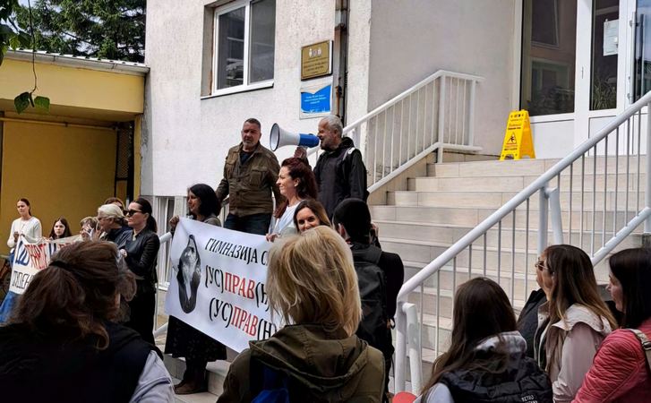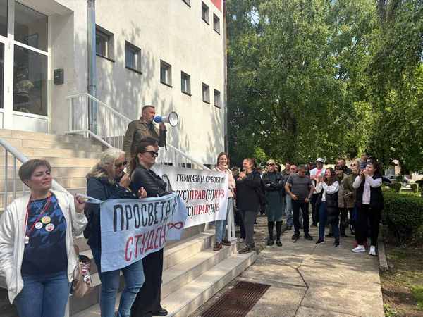 Ispred Gimnazije i stručne škole „Svetozar Miletić“ u Srbobranu, danas je održan veliki skup podrške profesorkama ove škole protiv kojih je pokrenut disciplinski postupak. Da podsetimo, profesorice Vesna Vrekić (matematika i informatika), Slavica Filipović (srpski jezik i književnost) i Mirjana Mihajlov (matematika), obustavile su 24. februara nastavu u znak solidarnosti sa studentskim zahtevima. U obustavi su bile 7 nedelja, do 14. aprila, kada su se vratile u nastavu da učenici ne bi ispaštali. Disciplinski postupak protiv njih pokrenula je direktorka ove škole Jasmina Crveni, a saslušanje profesorki održano je danas, 19. maja u 9 časova. U znak solidarnosti sa profesorkama Filipović, Vrekić i Mihajlov, šestoro njihovih kolega iz srbobranske Gimnazije stupilo je u jednonevnu obustavu rada, a za vreme saslušanja ispred škole je održan veliki protest podrške pomenutim profesorkama. Protest je okupio veliki broj sadašnjih i bivših učenika ove škole, kolega prosvetara iz Novog Sada i Bečeja, članove porodica profesorki protiv kojih je pokrenut postupak, kao i građana Srbobrana.