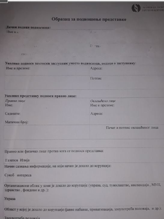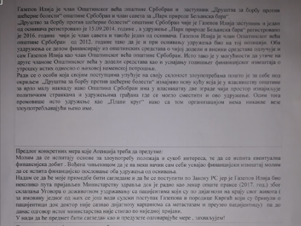 Nemamo nista protiv sto je doktor Gazepov clan opstinskog veca iz oblasti za koju je strucan, naprotiv! Doktoru ne zameramo sto je presao u redove naprednjaka (a nazivao ih fasistima) za cenu koja je sigurno veca od OBRAZA, ali smo apsolutno protiv toga da je dr.Gazepov predsednik Saveta za Park prirode "Beljanska bara" i ovlasceno lice za zastupanje drustva za borbu protiv secerne bolesti opstine Srbobran.Misljenja smo da je Gazepov u prilici da kao clan opstinskog veca utice na donosenje odluke da se "njegovim" udruzenjima dodele visemilionski iznosi iz budzeta opstine.Nemamo informaciju da je dr.Gazepov do danas podneo gradjanima finansijski izvestaj o nacinu trosenja nasih para.Po nasem misljenju dr.Ilija Gazepov je u SUKOBU INTERESA.Ono cime potkrepljujemo nase stavove, da je do sukoba interesa doslo, jeste prijava protiv dr.Ilije Gazepovog agenciji protiv korupcije sa tacno navedenim obrazlozenjem prijave, kao i opisom navedenog interesa.Prilikom citanja naredna dva dokumenta obavezno obratiti paznju na "drugi pasus,drugog dokumenta" - PROCITATI OBAVEZNO !