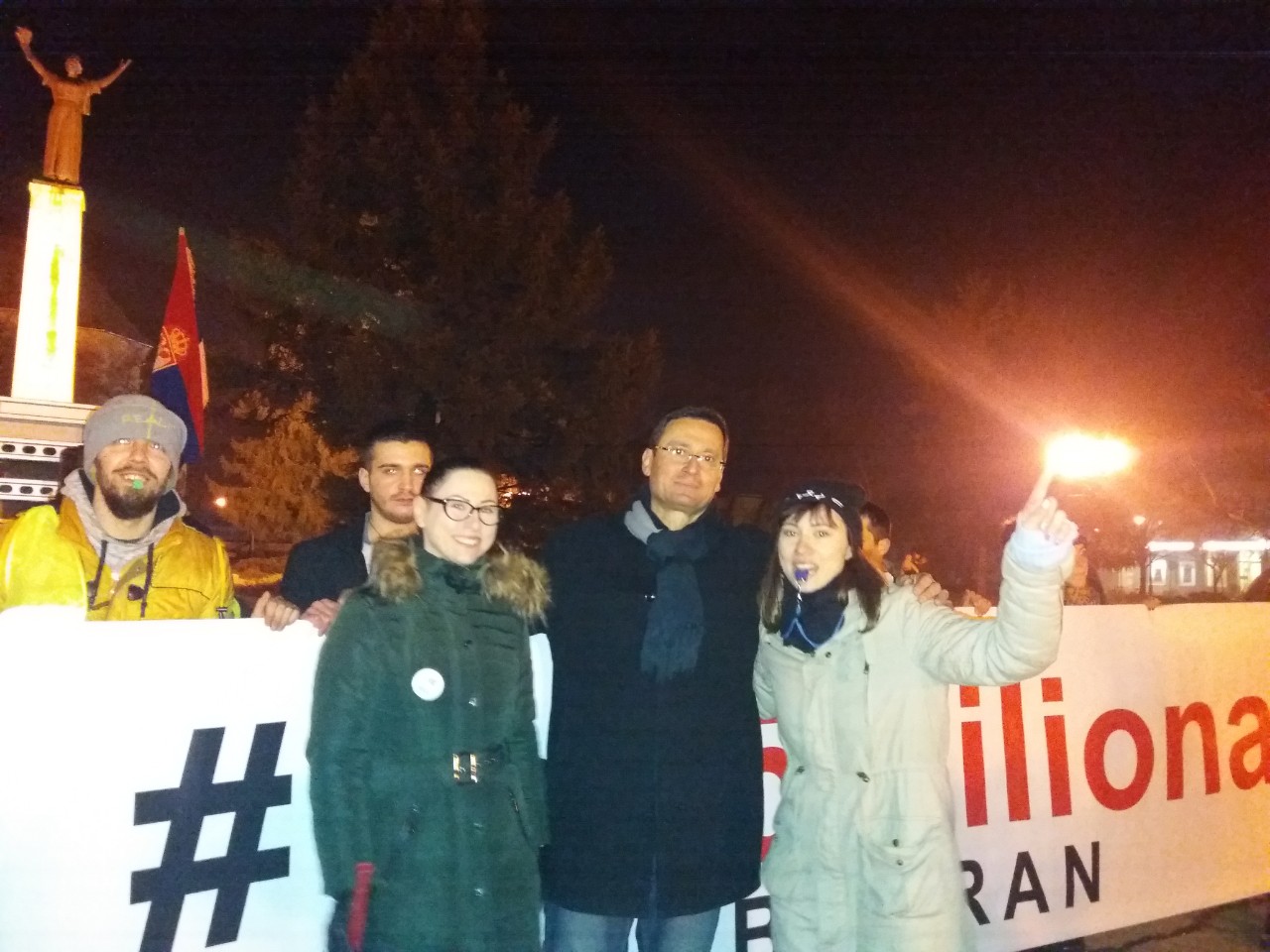Velika je stvar videti ovoliki broj Srbobranaca u protestu. Sigurno je daleko veći broj onih koji su protiv ovog režima ali zbog straha za svoje radno mesto ili iz straha od naprednjačkih batinaša nisu izašli na proteste. Ovoga puta su izašli oni najhrabriji ali ništa manje nisu vredni ni oni koji su ostali kod kuće, svakako i na njih mislimo. Znamo da su oni ostali u kući iz razloga što su im otkazom pretili njihovi direktori koji su interesno povezani sa SNS. Ovi koji su izašli nisu kupljeni sa kojekakvim sendvičima. Izašli su isključivo zbog svojih ubeđenja. Organizatori ovoga protesta su ovo organizovali ne zbog personalnih promena u vlasti, nego da bi došlo do promene sistema vrednosti. Ova vlast se bavi lažima i stvaranjem boljih uslova života samo pojedincima iz te vlasti. Ovaj narod je izašao da bi rekao STOP izbornim krađama što smo imali priliku i doživeti na poslednji izborima za Savet mesnih zajednica. Po našim saznanjima glasali su mrtvi, glasali su ljudi koji žive u inostranstvu i na dan izbora nisu bili u državi, a posmatračima opozicionih partija po našim saznanjima je bilo na neko vreme zabranjeno prisustvo na biračkim mestima. Za letak koji se pojavio u Srbobranu, u kojem smo Vladimir i ja označeni kao saradnici Soroša, mogu izjaviti da je totalna glupost. Moja deca koja su letak videla u duhovitom stilu su mi zamerila i rekle "da su znale da sam dobar sa Sorošem ne bi išle u Slovačku da rade".