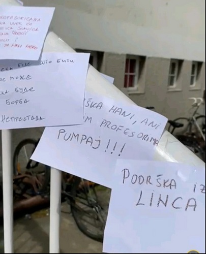 Osim poruka podrške profesoricama, bilo je i natpisa sa porukama podrške studentskim zahtevima, ali i ispisanih poruka za direktoricu, kojoj su učenici ponovo pod prozorom kancelarije pevali „Izađi mala“. Na stepeništu je i ovog puta ostavljen sendvič, s tom razlikom što ovog puta nije eksplicitno navedeno kome je namenjen.