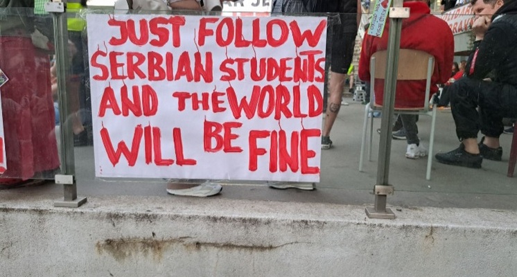 Još jedno veče bez Dnevnika 2! Studentska blokada RTS-a večeras je ušla u 6. dan, a srpska mladost već je uspela ono što niko do sada nije: da spreči emitovanje Dnevnika 2, i to drugi dan zaredom. Hiljade građana već danima se nalaze ispred zgrade RTS-a u Takovskoj i Aberdarevoj, kao i ispred studija u Košutnjaku. Podrška građana ne jenjava iako je vreme Vaskrsa, a za svaki slučaj u pomoć su priskočili studenti i građani Novog Pazara, došavši da odmene svoje kolege koje proslavljaju najveći hrišćanski praznik. "Pumpa" se iz sve snage: pištaljkama, vuvuzelama, dobošima, i povicima "ko ne skače, taj je ćaci"! Brojni su i transparenti kojima studenti pokazuju da im ni posle 5 meseci svakodnevnih protesta ne fali kreativnosti.  Studentkinja medicinskog fakulteta, Sonja, napravila je transparent kojim je želela da pošalje snažnu poruku, kako je rekla u izjavi za naš portal: "Mnogo ljudi u poslednje vreme govori kako su studenti njihovi heroji, pa čak i superheroji. Onda mi je pala na pamet ideja da napravim transparent superheroja kao što je Betmen, koji je borac za pravdu, jer se danas za pravdu bori bezmalo cela Srbija, ne samo studenti. I onda se nekako zaključak nameće sam: ako je Betmen uz studente, logično je da su miševi u Ćacilendu. Pumpamo do kraja"! Blokada RTS-a biće nastavljena i u narednim danima, sve do ispunjenja zahteva, dok RTS sa nepoznate lokacije emituje pokrivalice umesto pravog Dnevnika. Za sve to vreme, nenadležna institucija lomi kvake po Andrićevom vencu, jer je nemoćan kao nikada do sad. Studenti pumpaju i lagano dinstaju, a on je već na ivici živaca. Šta li će tek biti kad krene prvomajsko "roštiljanje", ostaje da se vidi. Bezcenzure.info i dalje prati dešavanja ispred RTS i o svemu će vas pravovremeno izveštavati.