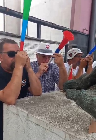Ostali Ćaciji bili su u nešto manje svečanom izdanju — većina pijana ili polupijana! Jedan je zatečen kako leži izvrnut s praznom flašom u ruci, dok su se drugi junački borili za poslednji smoki iz kesice koju je neko otvorio još pre mitinga. Bio je to, ukratko, još jedan poraz dostojanstva u režiji spontane podrške.